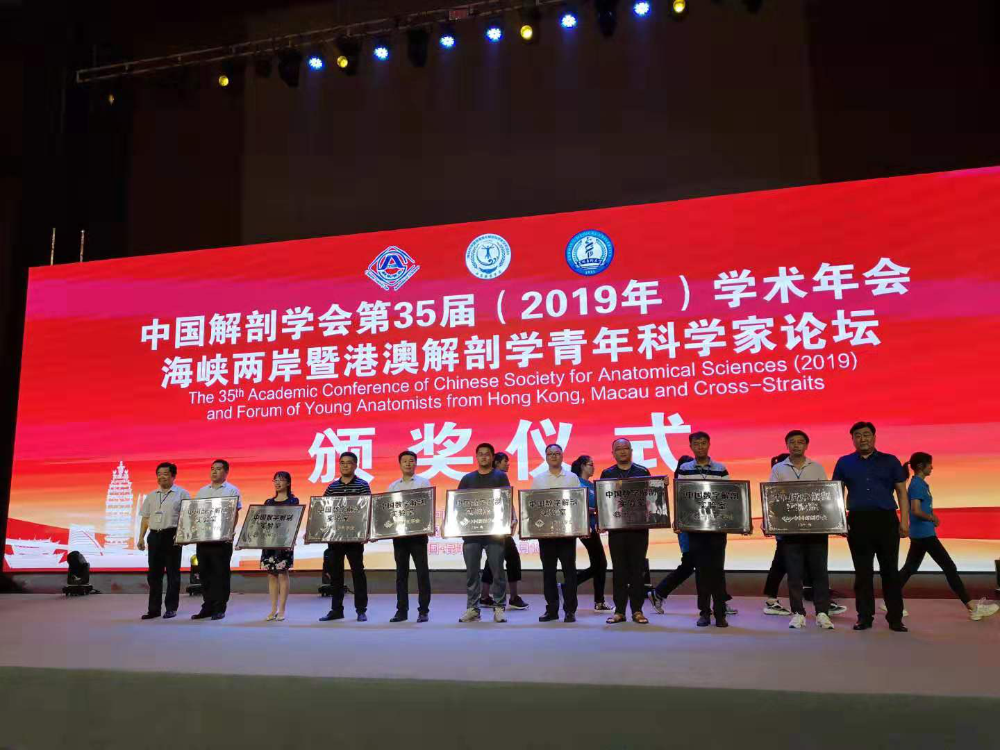 在8月20日结束的海峡两岸港澳解剖学青年科学家论坛大会暨中国解剖学会第35届学术年会上,我院申报的“中国数字解剖实验室”成功获批,中国解剖学会理事长刘树伟教授为获批院校颁发了牌匾。