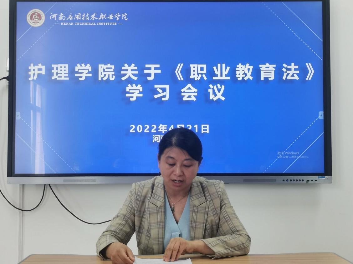 为进一步提升护理学院教师的职业素养,Beat365官方网站护理学院关于《中华人民共和国职业教育法》(以下简称《职业教育法》)学习会议于2022年4月21日下午2:30在A515顺利召开。由王风云院长领学。