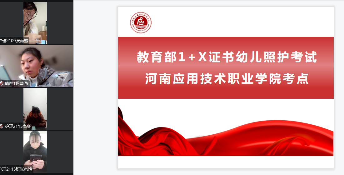 鉴于目前疫情的严峻形势及学生居家线上学习的现况。本次1+X幼儿照护职业技能等级证书的培训及考试主要是在线上完成。在此期间,有学生因感染新型冠状病毒肺炎,顶着高热还在进行培训及考试,有学生外出就诊依然不忘刷题复习。监考老师感染新型冠状病毒肺炎后即便身体酸痛仍然完成长达7个小时的监考。正是师生们这种顽强奋斗,敢争先的精神使得本次1+X证书幼儿照护考试圆满完成。也为我省实现“人人持证、技能河南”做出来了一份努力,相信在学校各部门领导的关心与支持下,1+X幼儿照护的培训及考核工作会越做越好!