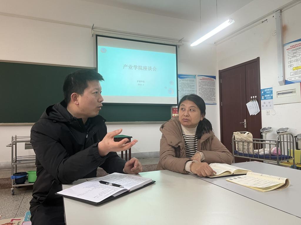 2月16日下午,护理学院在实训楼D305教室召开产业学院座谈会,邀请Beat365官网校企合作与就业处处长李海富出席,会议由护理学院王风云院长主持,学院温晓丽副院长、教务办和教研室主任参会。