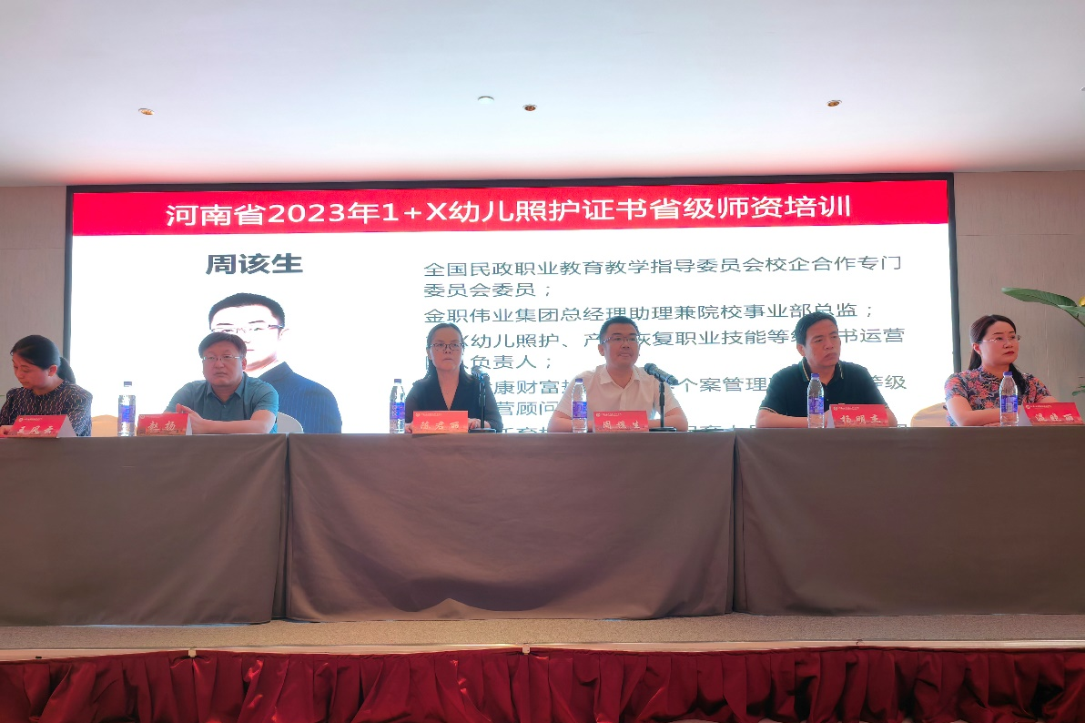 为贯彻《国家职业教育改革实施方案》精神,推进职业技能等级证书试点工作,推进河南省职业教育发展,6月24日,由河南省教育厅主办、Beat365官方网站承办、湖南金职伟业母婴护理有限公司协办,河南省2023年1+X幼儿照护省级师资培训班在郑州艺龙酒店顺利开班。