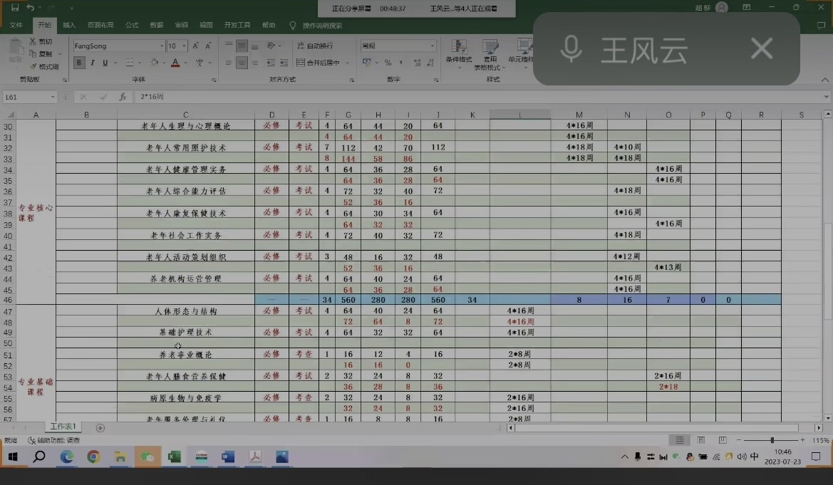 随后,根据人才培养方案修订工作推进,全体专兼职教师参与护理、助产、老年保健与管理、康复治疗技术、婴幼儿托育与管理专业涉及的专业课程评定、讨论工作。王院长强调,根据外出学习兄弟院校的先进经验和学校最新要求,全体教师应高度重视并认真、如期完成2023年人才培养方案的修订工作。
