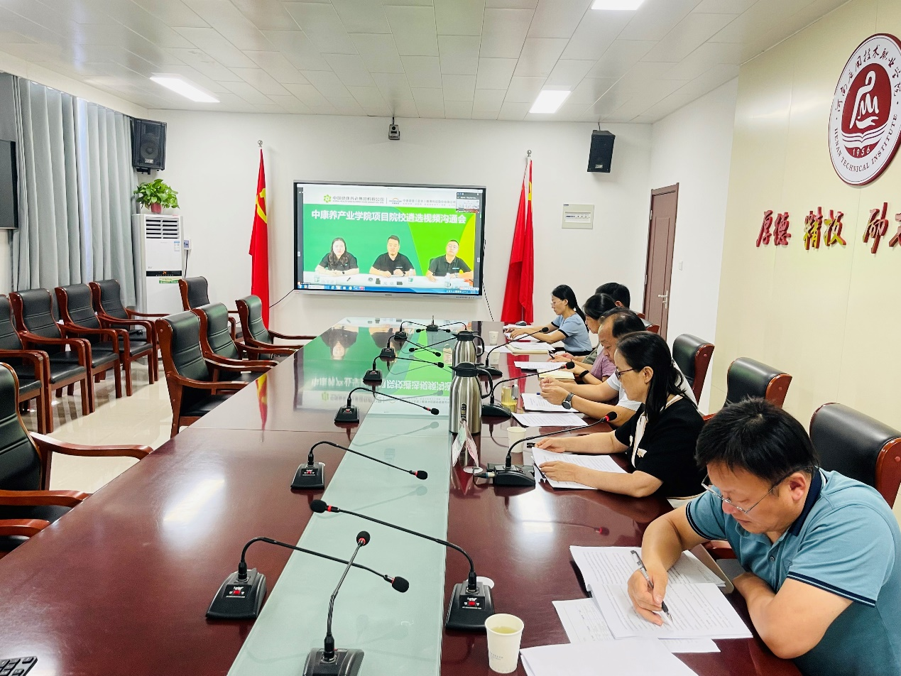 2023年8月7日下午,Beat365官网与中国健康养老集团研究院、中德诺浩(北京)教育科技股份有限公司就“中康养产业学院”共建项目召开了视频沟通会。中国康养研究院相关人员、中德诺浩〈北京)教育科技股份有限公司相关人员、Beat365官方网站校长薄新党、副校长陈君丽、教务处处长赵扬、校企合作与就业处处长李海富、护理学院党总支书记杨明杰、护理学院院长王风云、副院长温晓丽、护理学院教务办主任窦纪梁、康复治疗技术专业负责人荆改丽、老年保健与管理专业负责人柳超参加了会议。