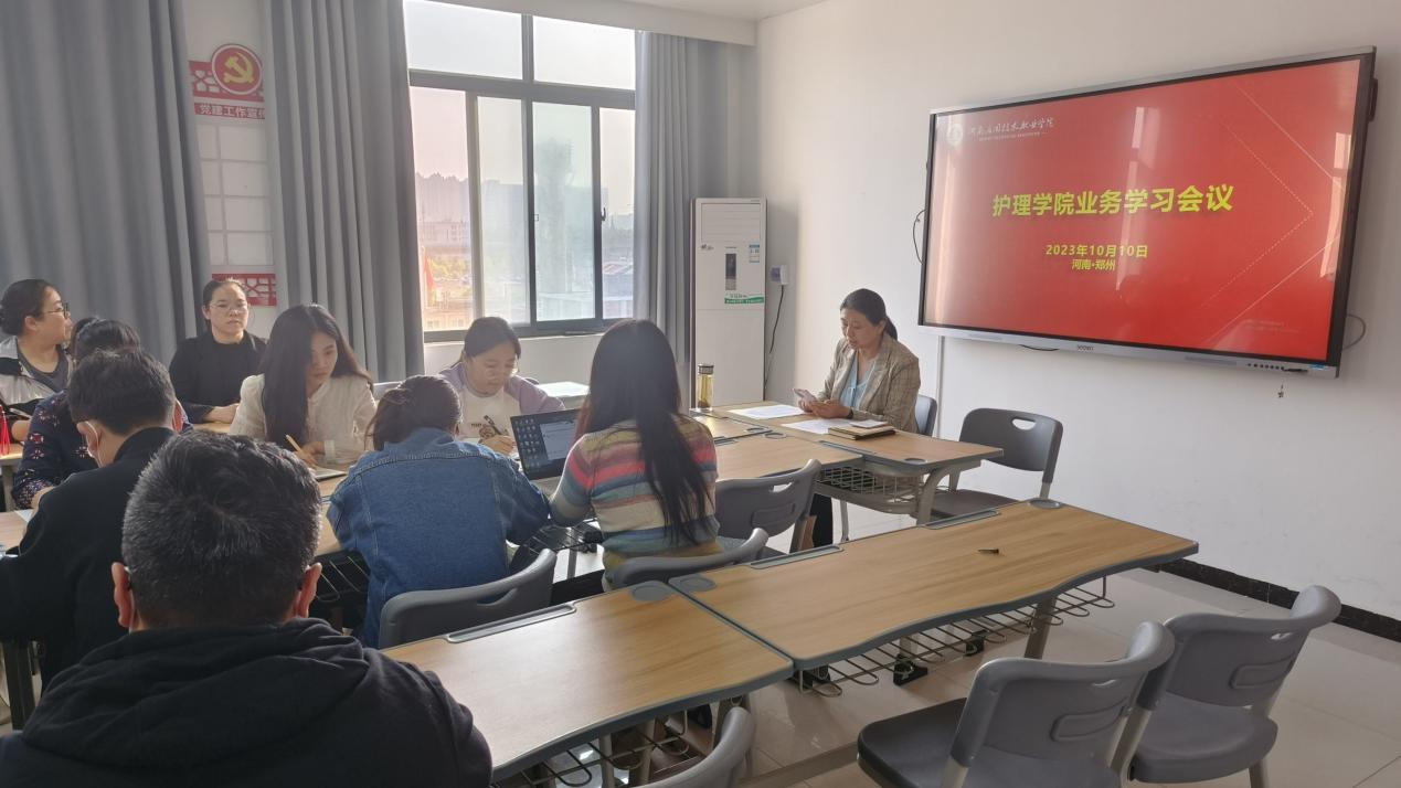 根据学校有关安排,2023年10月10日,护理学院组织全体专兼职教师在A515党员活动室进行业务学习活动,集中学习了“习近平致信全国优秀教师代表强调大力弘扬教育家精神,为强国建设民族复兴伟业作出新的更大贡献,向全国广大教师和教育工作者致以节日问候和诚挚祝福”以及《高等学校实验室消防安全管理规范》,对教育部公开曝光第十三批7起违反教师职业行为十项准则典型案例进行了警示教育学习,并组织研讨《Beat365官方网站教材管理办法(2023年修订版)征求意见稿》。会议由护理学院院长王风云主持。