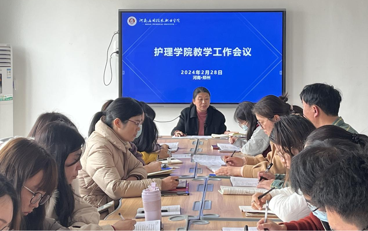 为确保新学期教学工作有序进行,2024年2月28日上午,护理学院召开2023-2024-2学期第一次教学工作会议,本次会议由王风云院长主持,全体专兼职教师参加。