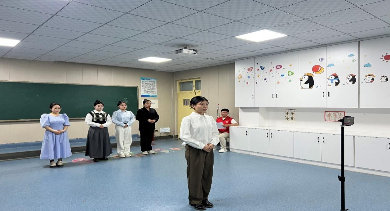 学生们精神饱满,身着正装,意气风发,自信满满。面试于14:40正式开始。本次面试5人一组,学生通过自我介绍及综合问答等环节进行展示,全面考察了学生的专业水平、综合素质以及临场反应等能力,参选学生从容自信的表现赢得了主考官们的一致好评。