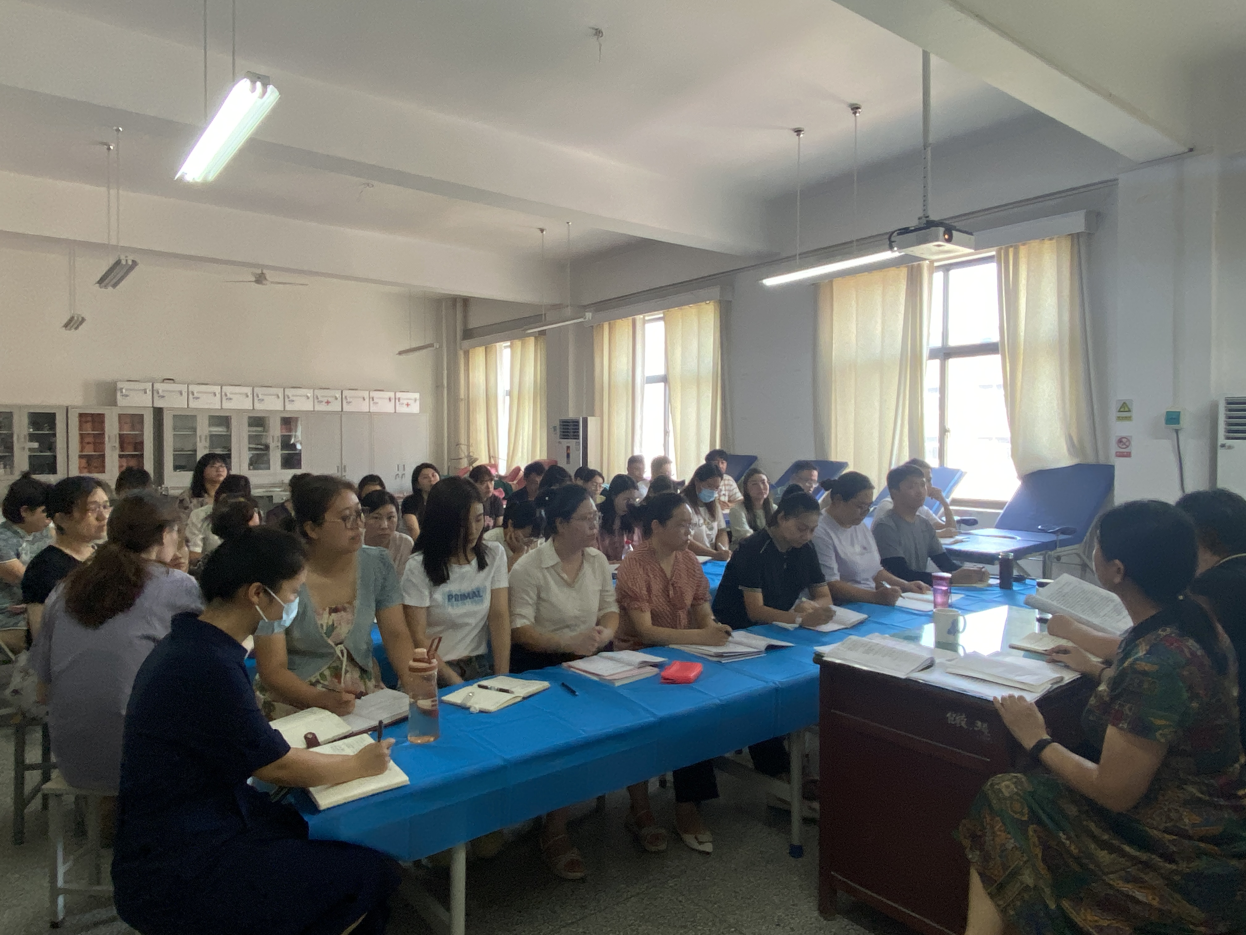 为了确保新学期各项工作的顺利开展,8月31日,护理学院组织全体教职工在D306召开新学期工作会议。护理学院党总支书记杨明杰主持会议,并认真详实传达了学校党委书记闫俊山和校长薄新党在全校新学期工作会议上的讲话精神,总结过去的成绩,分析当前的发展形势,规划新学期的各项工作。本次会议从党建、教学、学生工作、就业、产教融合、“双高”建设、安全稳定等多个方面展开,通过明确工作目标、细化工作措施、强化责任落实,护理学院将在新学期以更加饱满的热情、更加务实的作风,推动学院各项工作再上新台阶。
