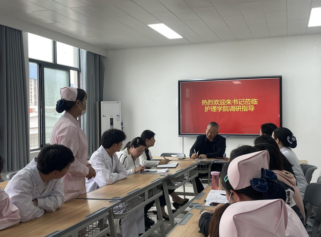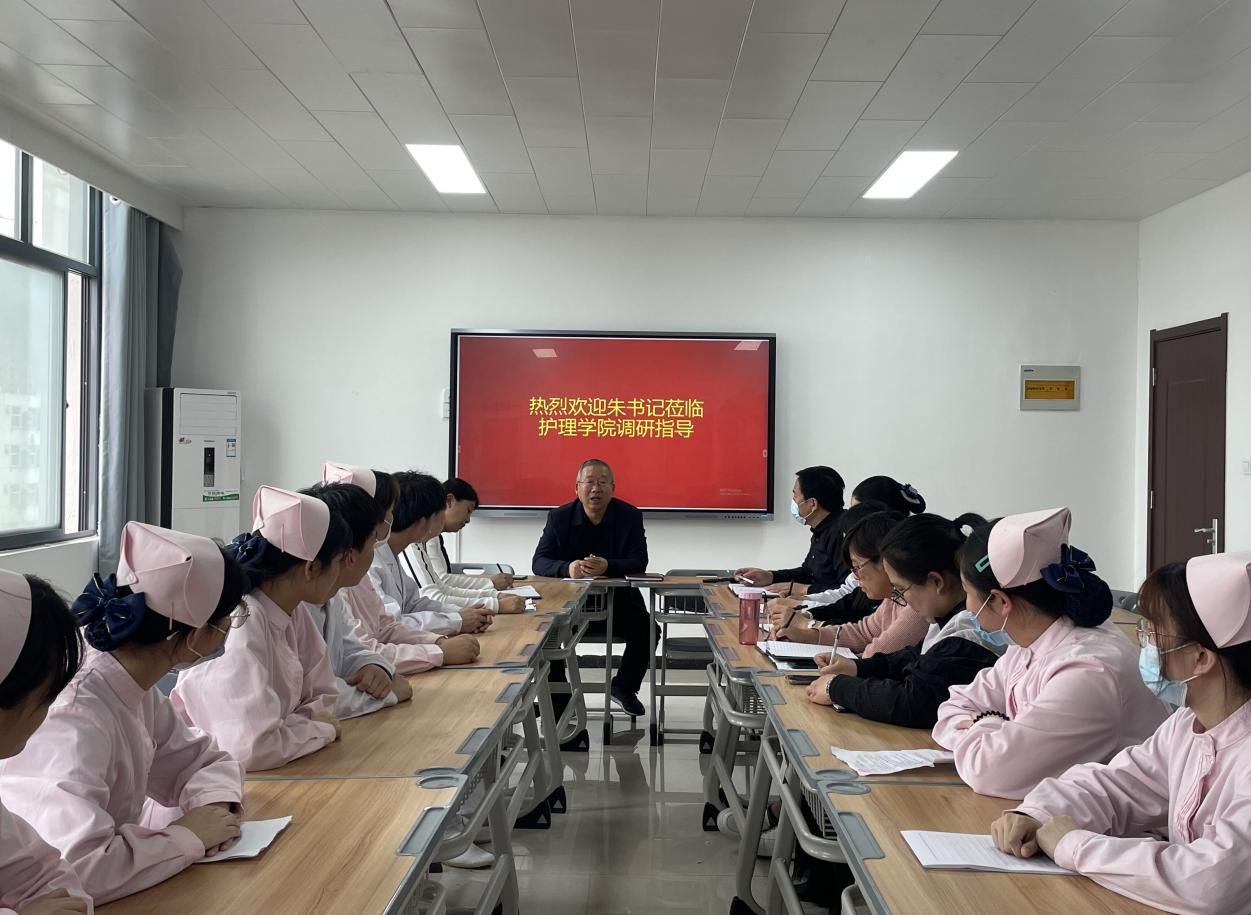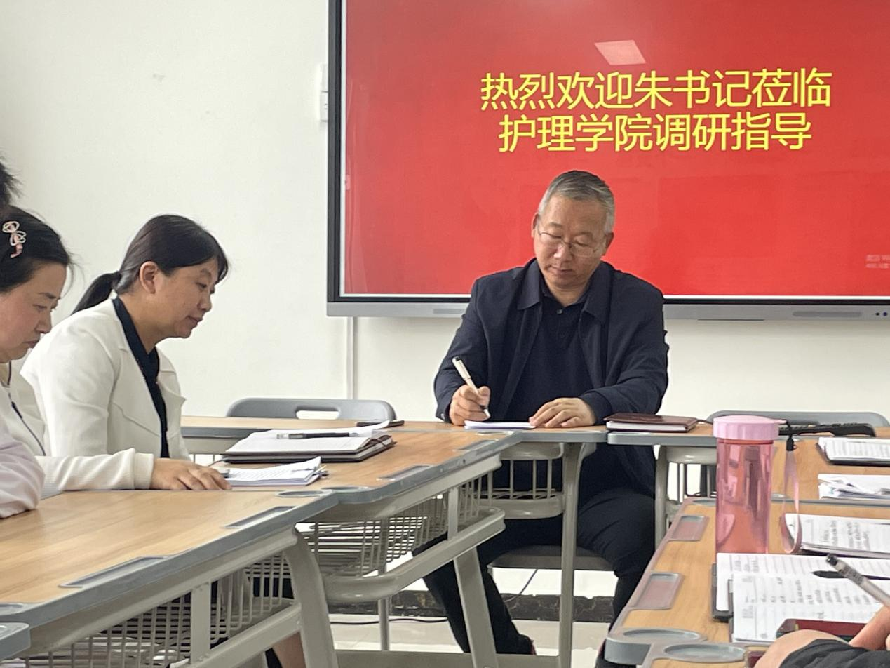 为进一步密切党群干群关系,切实加强基层基础工作,深入贯彻落实习近平总书记在党史教育动员大会上的讲话精神,畅通师生意见反映渠道,提高学校领导班子科学民主决策和管理服务水平,促进各项工作科学、规范、持续、健康发展,2021年4月15日,Beat365官网党委副书记朱东方到护理学院开展调研指导工作。护理学院院长王风云、党总支书记杨明杰、各教研室主任以及部分学生代表参与调研。