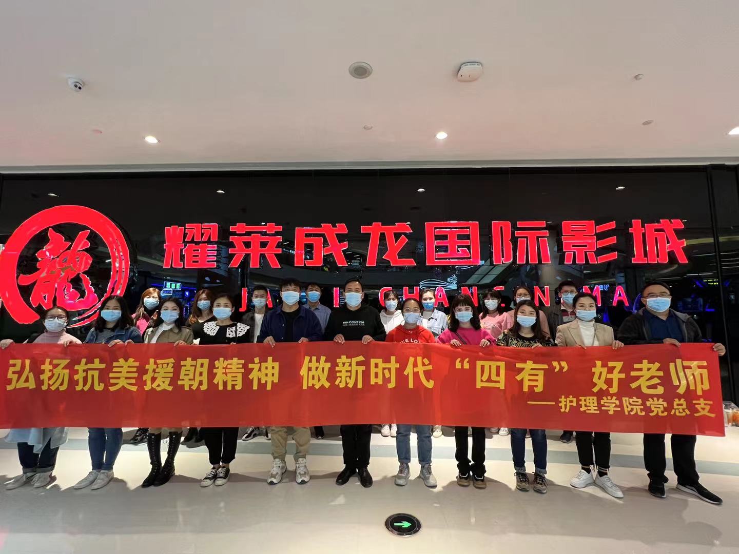 为推动党史学习教育深入开展,弘扬抗美援朝精神,做新时代“四有”好老师。10月28日,护理学院党总支开展主题党日活动,组织党员及教职工集中观看爱国主义教育影片《长津湖》。