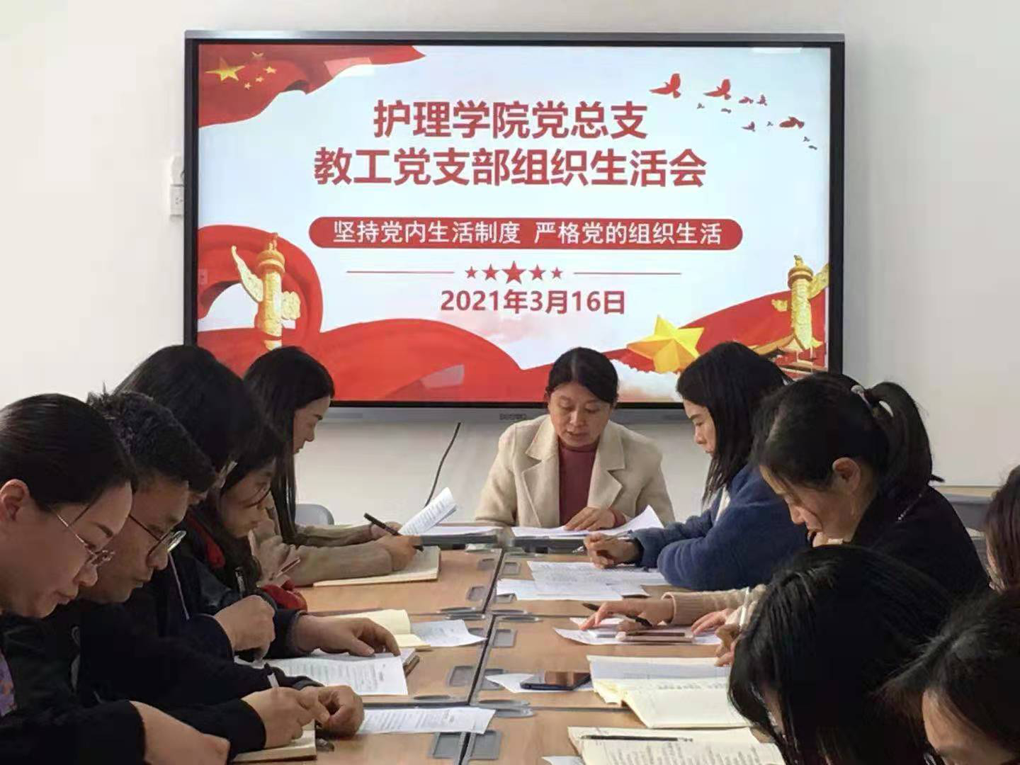 根据中共Beat365官方网站委员会关于开展2020年度基层党组织组织生活会和民主评议党员的通知,护理学院党总支教工党支部于2021年3月16日下午16:00于护理学院党员活动室515组织全体教工党员召开以支部为单位的专题组织生活会及民主评议党员。会议由党支部书记王风云召集并主持。
