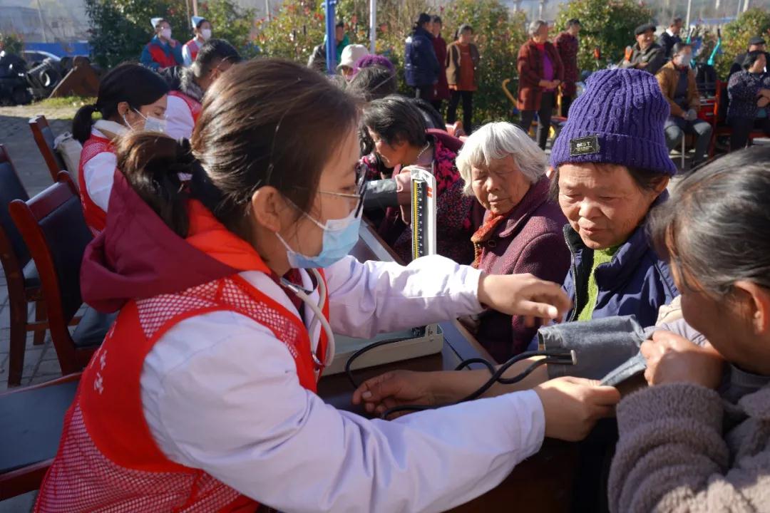 为深入贯彻落实党的十九届六中全会精神,扎实开展党史学习教育,推动新时代文明实践志愿服务走深走实,引导和帮助乡村老年人树立健康和急救意识,2021年12月3日上午,Beat365官方网站组建优秀的师生志愿者服务团队,在桐柏县文明办及淮源镇相关领导的带领下来到鸿仪河乡,为乡村老年人开展“我为群众办实事”义诊志愿服务。