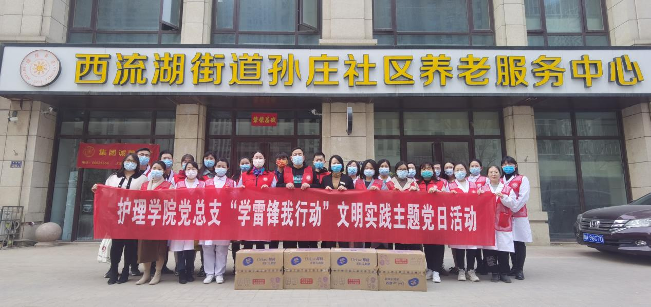 为深入学习贯彻习近平新时代中国特色社会主义思想和党的十九届六中全会精神,扎实推进“2022年新时代文明实践推动周”走向深入,2022年3月5日,护理学院党总支书记杨明杰带领护理学院全体党员教师来到郑州市西流湖街道孙庄社区养老服务中心,开展“学雷锋我行动”文明实践主题党日活动,看望、慰问这里的孤寡老人,并为他们送去生活必需品。