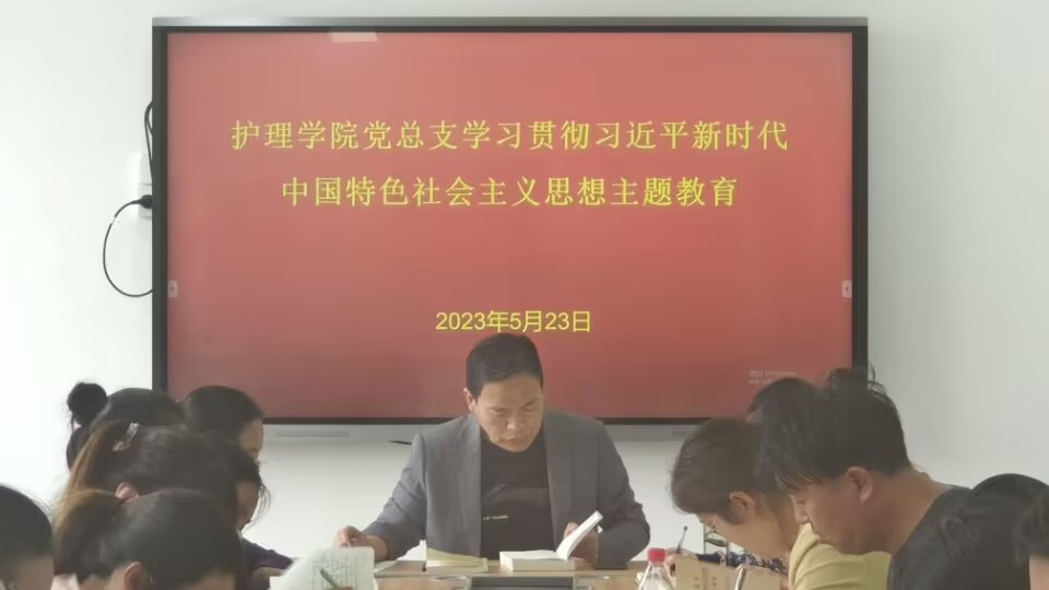 根据学校党委宣传部安排,2023年5月23日,护理学院党总支组织全体教职工在A515党员活动室召开政治理论学习专题会,开展学习贯彻习近平新时代中国特色社会主义思想主题教育,会议由护理学院党总支书记杨明杰主持。