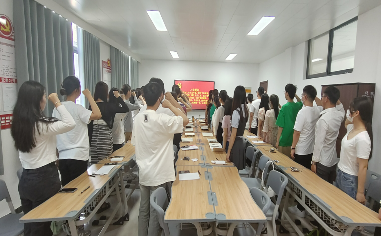 最后,全体党员面向党旗,神圣而庄严地宣誓,共同重温入党誓词,再一次深刻体会作为一名共产党员的责任和义务。通过此次主题党日活动,毕业生党员对自己在未来的学习工作中如何进一步发挥党员的先锋作用有了更加深刻的认识,不仅加强了毕业生与学校的交流,也让即将走出校园的毕业学子感受到母校的温暖关怀和殷切期望,激发了党员的责任意识,提升了党员的党性修养,对毕业生更好地走向社会,在新时代奋发有为、建功立业具有深刻的教育意义。