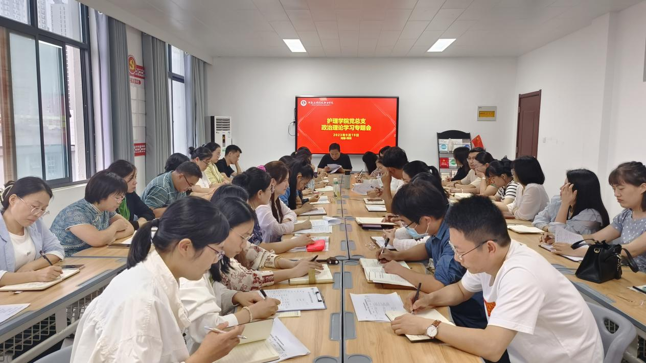 为深入开展学习贯彻习近平新时代中国特色社会主义思想主题教育,根据学校有关安排,2023919日,护理学院党总支组织全体教职工在A515党员活动室召开专题会,集中学习《习近平主持二十届中共中央政治局第五次集体学习:加快建设教育强国 为中华民族伟大复兴提供有力支撑》《习近平在文化传承发展座谈会上强调:担负起新的文化使命 努力建设中华民族现代文明》《习近平在中共中央政治局第六次集体学习时强调:不断深化对党的理论创新的规律性认识 在新时代新征程上取得更为丰硕的理论创新成果》等内容,会议由护理学院党总支书记杨明杰主持。