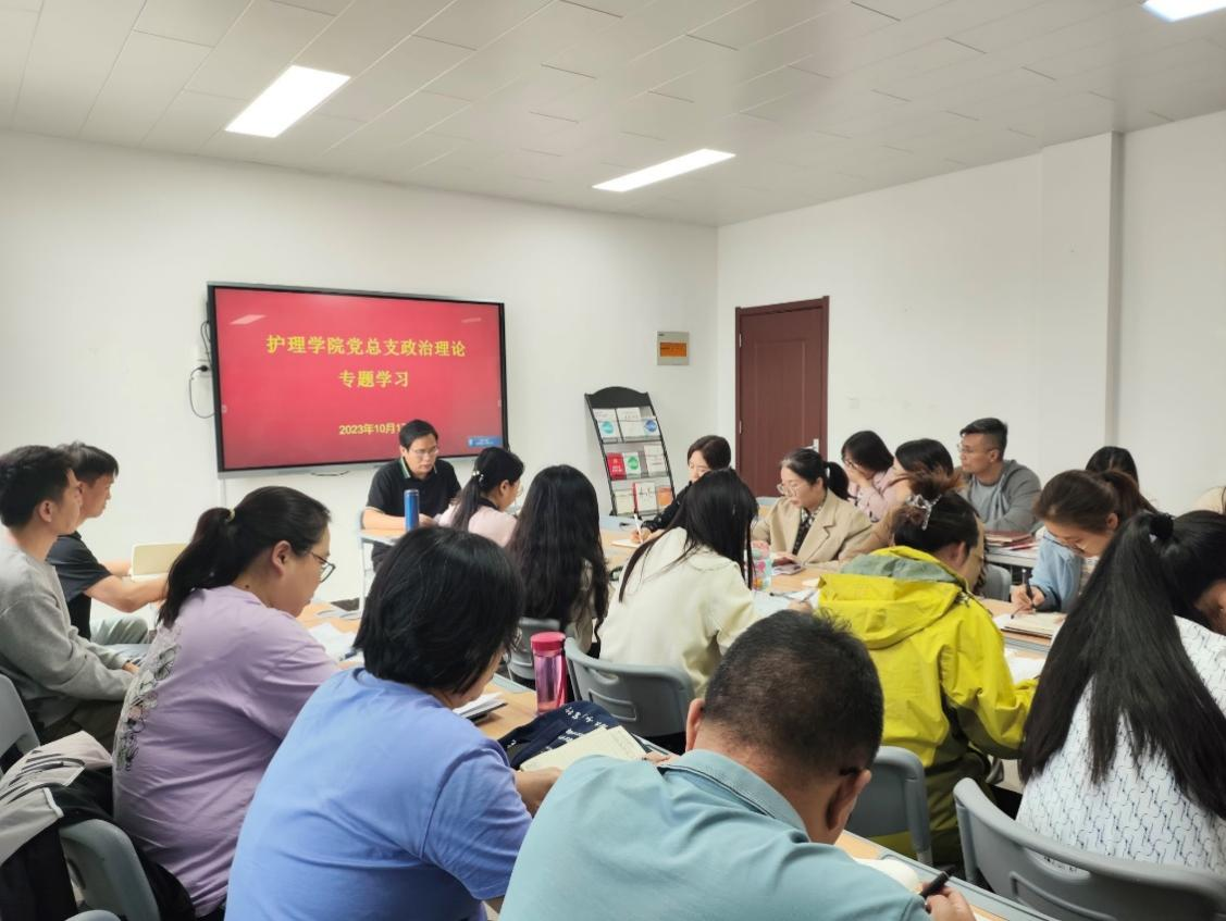 根据学校有关安排,2023年10月17日,护理学院党总支组织全体教职工在A515党员活动室进行专题学习,集中学习了《求是》2023年第18期-习近平:扎实推动教育强国建设;《求是》2023年第19期-习近平: 《推进中国式现代化需要处理好若干重大关系》以及习近平对宣传思想文化工作作出重要指示,并组织学习了第五次全国经济普查工作的相关内容。会议由护理学院党总支书记杨明杰主持。