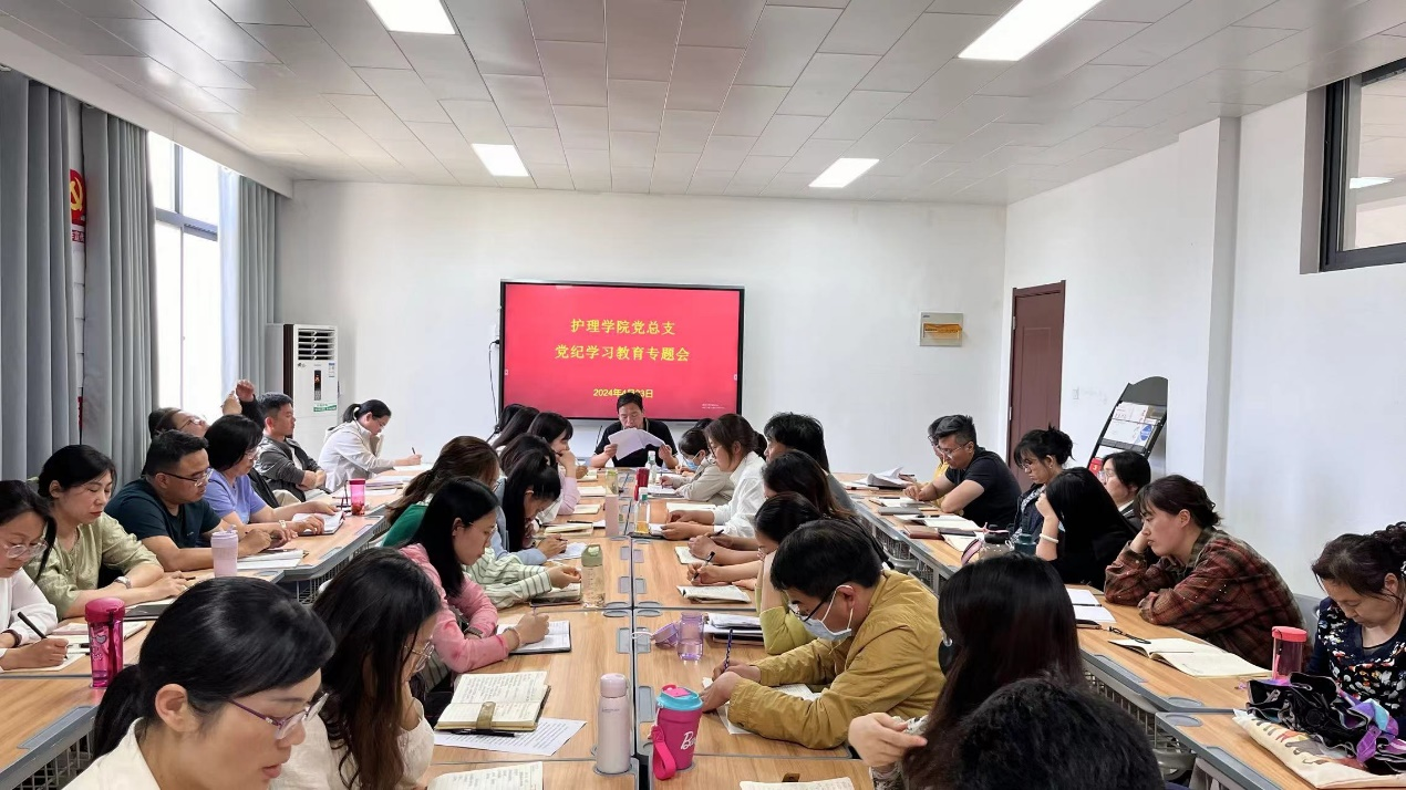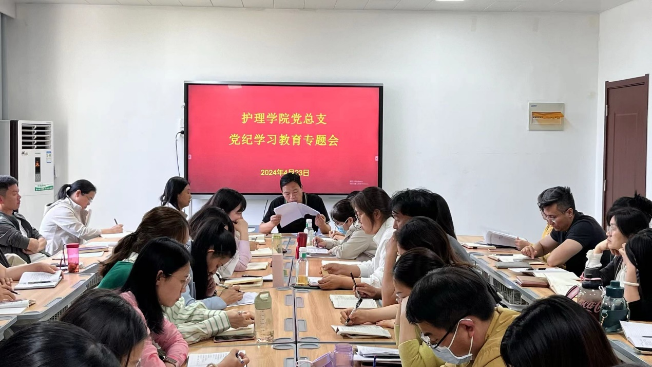为深入学习领会习近平总书记关于党纪学习教育的重要讲话与指示精神,认真贯彻落实学校党委关于开展党纪学习教育的相关部署,4月23日,护理学院党总支召开党纪学习教育专题会,全面部署学院党纪学习教育工作。会议由党总支书记杨明杰主持,学院全体教师参加会议。