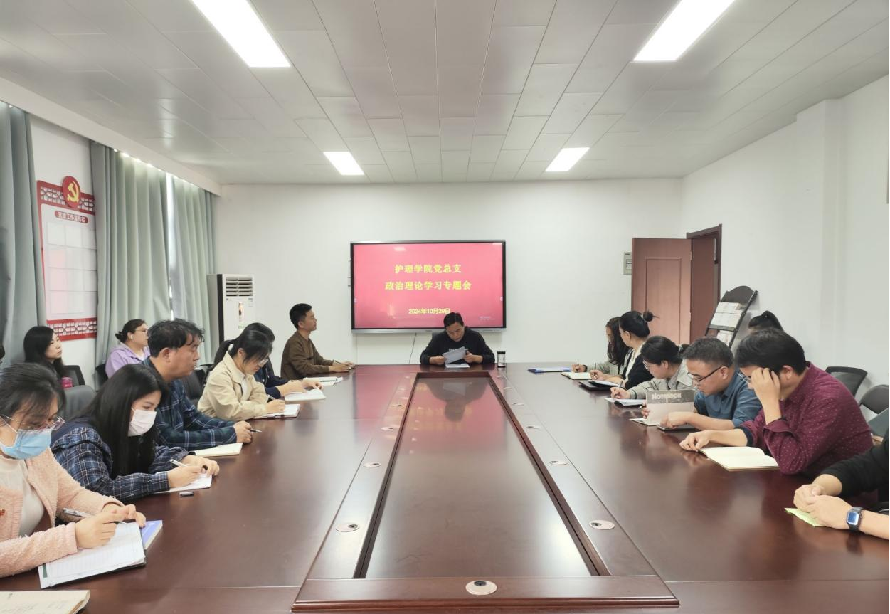 根据学校安排,20241029日,护理学院党总支组织全体教职工在A515集中开展政治理论专题学习,会议由护理学院党总支书记杨明杰主持。