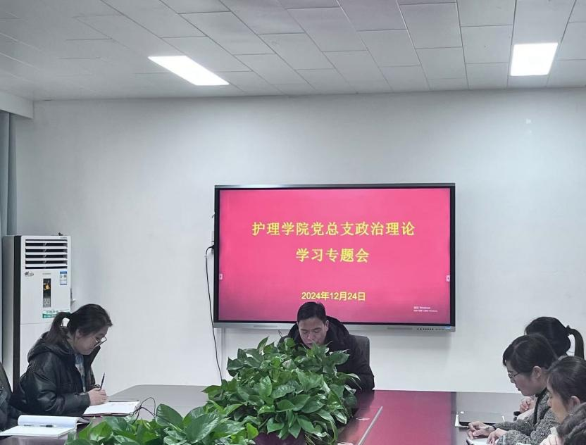 2024年12月24日,护理学院党总支按照学校有关安排,组织全体教职工在A515召开政治理论专题学习会议,会议由党总支书记杨明杰主持。首先,在杨明杰书记的带领下,全体教职工认真学习了2024年第24期《求是》杂志上发表的习近平总书记重要文章《深入推进党的自我革命》。文章深刻阐述了中国共产党作为世界上最大的马克思主义执政党,如何成功跳出治乱兴衰历史周期率、确保党永远不变质不变色不变味这一战略性问题。通过学习,大家深刻认识到,只有以时代发展的要求审视自己,以强烈的忧患意识警醒自己,以自我革命精神锻造自己,不断提高领导能力和执政水平,才能确保党始终成为中国特色社会主义事业的坚强领导核心。