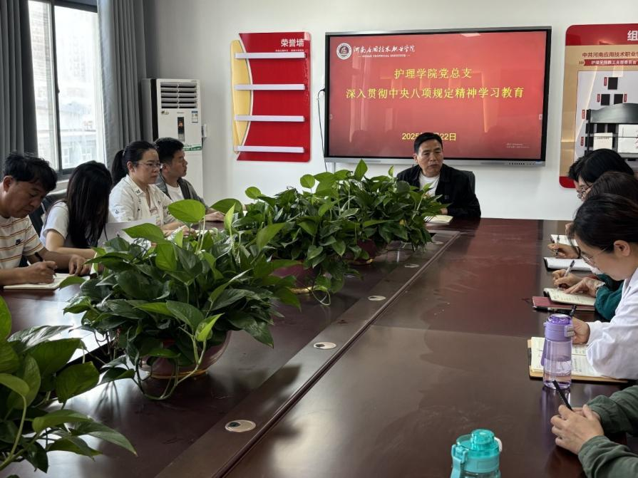 2025年4月22日下午,根据学校相关安排,护理学院党总支组织全体教职工在A515会议室召开政治理论学习。会议围绕《习近平关于加强党的作风建设论述摘编》第三部分、中央八项规定及其实施细则、习近平总书记重要文章《加快建设文化强国》及“十类70个违反中央八项规定精神典型案例汇编”展开专题学习研讨。会议由护理学院党总支书记杨明杰主持。
