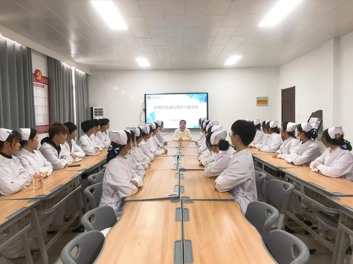 诚信是中华民族的传统美德,是一个人的立身之本。 在期末考试即将来临之际,为了加强班级学风建设,培养同学们的自律意识和诚信意识,护理学院组织各班召开“诚信考试教育”主题班会。