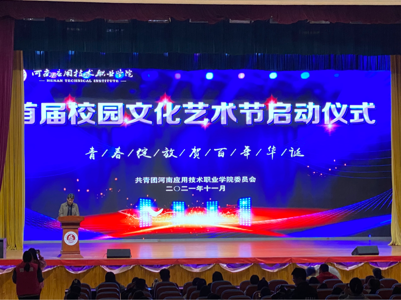 为丰富校园美育文化生活,搭建具有时代特征、青年特点的大学生校园美育文化建设活动平台,2021年11月2日下午,Beat365官网首届校园文化艺术节启动仪式暨校园歌手大赛“梦想的声音”在学校大礼堂隆重开幕。