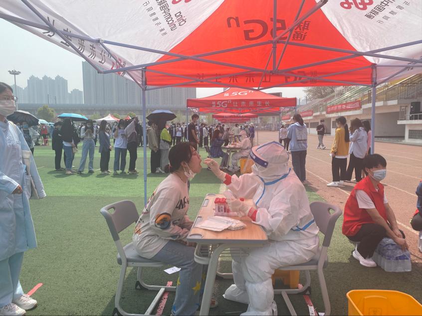 同学们也积极配合,听从指挥,配合医护人员与志愿者的核酸采样工作,按照指引快速完成采样后有序离开,整个核酸检测过程科学、规范、高效。
