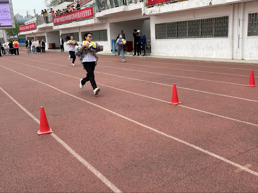 上午10:50,女子10*50抱球跑接力赛伴随着哨声响起开始。各组队员绕开障碍,稳妥将球传给下一个队员,护理学院的运动员们咬紧牙关,通过日常的训练,她们之间已有了默契配合,我院队员们脱颖而出,护理3队获得第二名、护理4队获得第四名!