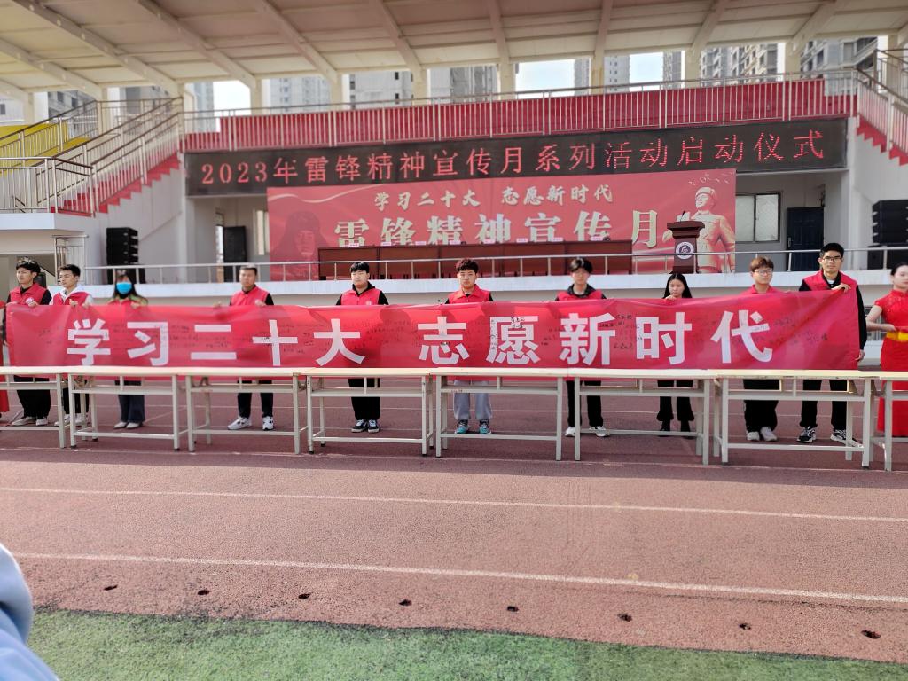 今年 3 月 5 日是第六十个学雷锋纪念日,是第 24 个中国青年志愿者服务日。为深入学习宣传贯彻党的二十大精神,传承和弘扬雷锋精神,丰富新时代青年志愿服务内涵,引领广大团员青年奋进新时代、奋进新征程,校团委于3月2日下午在校运动场举行“学习二十大 志愿新时代”雷锋精神宣传月系列活动启动仪式,我院积极组织部分师生代表参加此次活动。
