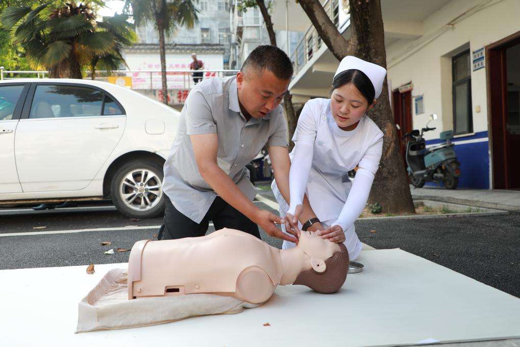 在心肺复苏急救方法普及环节,志愿者们通过模拟人演示,分步讲解心肺复苏的操作要点,包括判断意识、胸外按压、开放气道、人工呼吸等关键步骤。为了更好地掌握动作要领,志愿者手把手教学,鼓励大家亲自体验按压的力度和频率。“原来心肺复苏有这么多讲究,今天学会了,以后遇到紧急情况就知道该怎么做了。”一位参与实践操作的居民兴奋地说道。