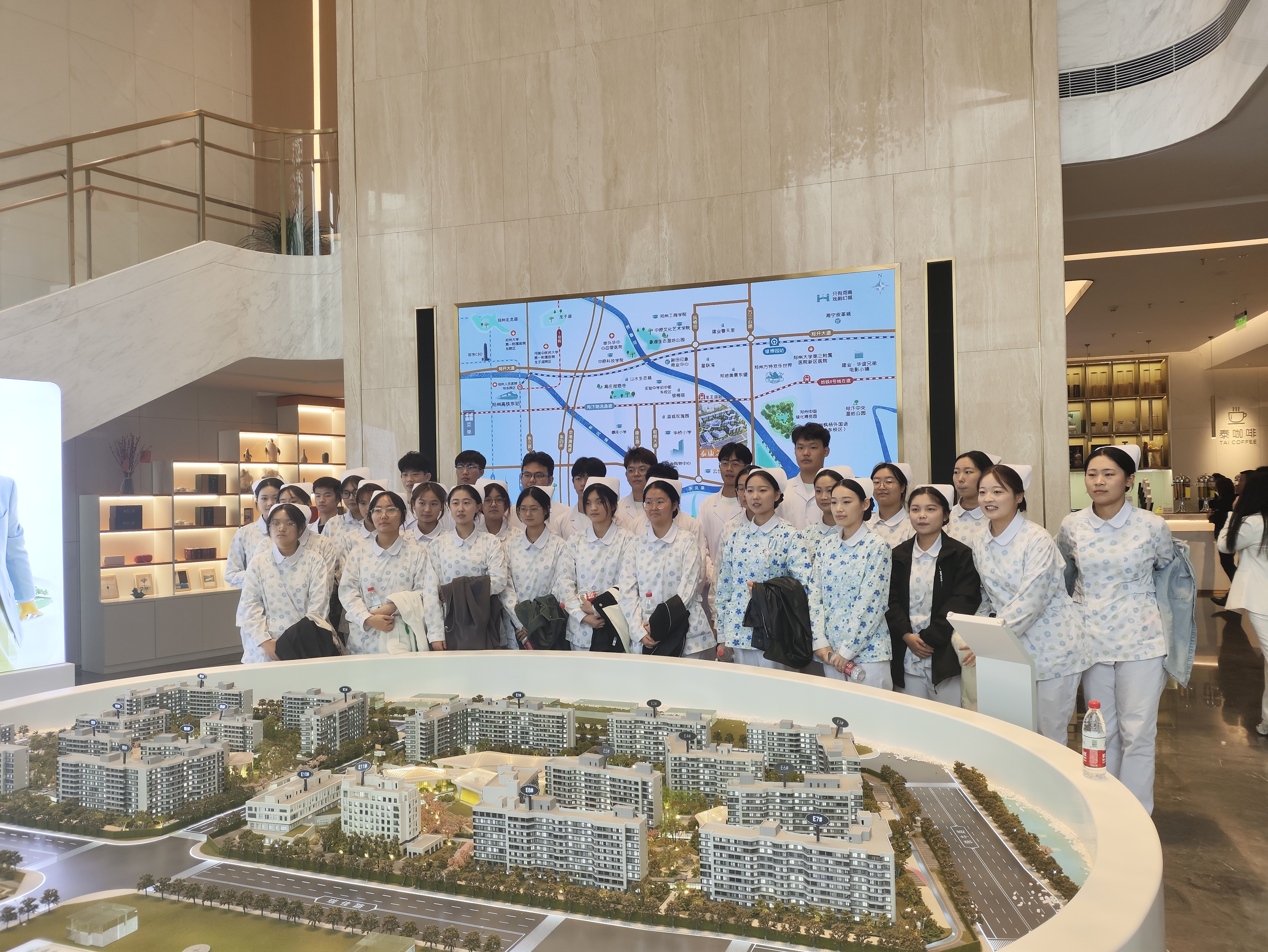 2023年11月3日上午Beat365官方网站护理学院党总支书记杨明杰、院长王风云、校企合作与就业处副处长张万仑等一行带22级老年保健与管理专业全体学生赴中牟市泰康之家豫园访企拓岗。