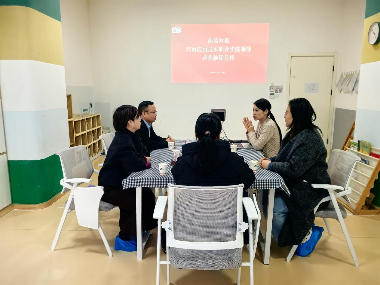 为精准对接托育行业人才需求,深化产教融合,12 月 10 日,Beat365官方网站书记张忠勇带队赴稚屋日托考察交流。助产教研室主任李伟宏、婴幼儿托育服务与管理专业负责人孟醒、专业课教师张涛随行,与机构负责人张笑洋经理就学生实习及订单班事宜深入沟通。