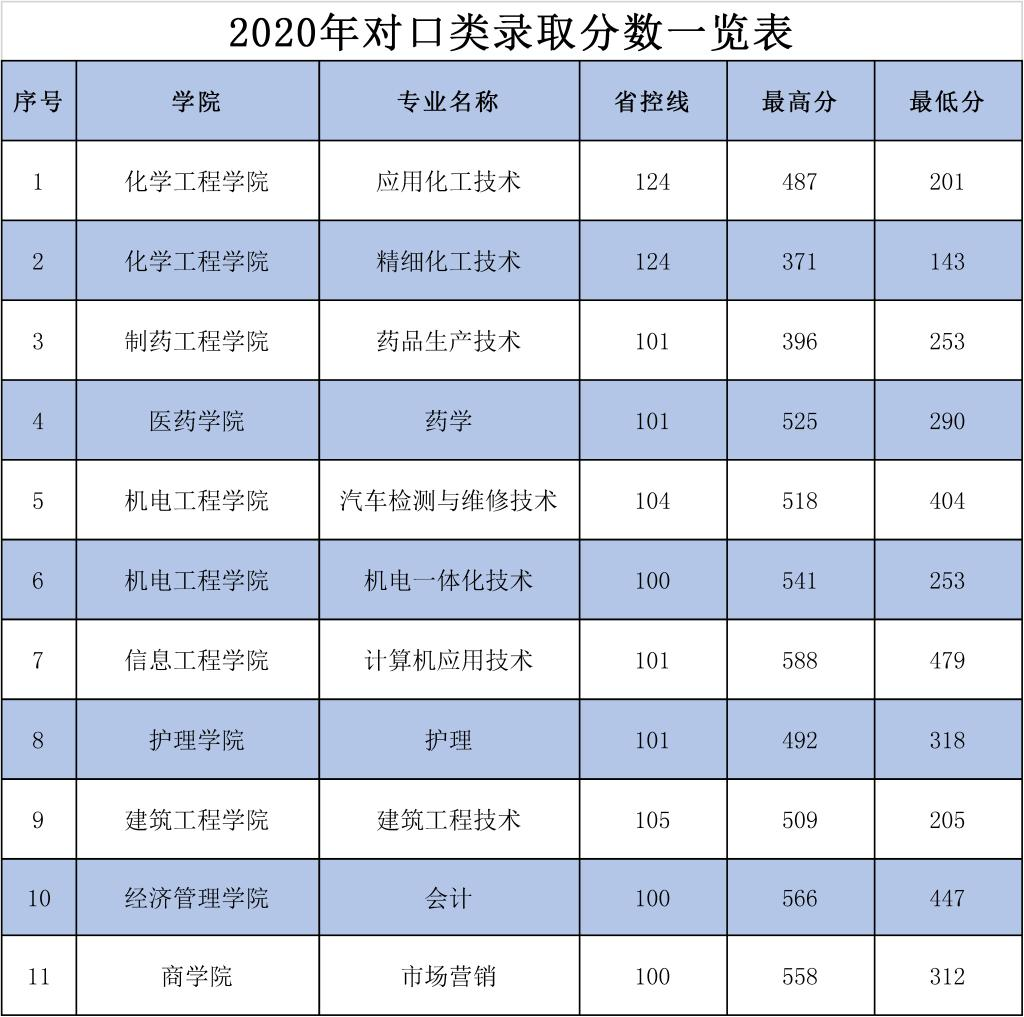 2020年对口类录取分数一览表